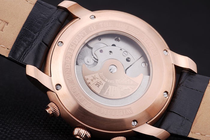 Krone: 18k Rose vergoldet cutwork Krone mit Audemars Piguet-logo und zwei kleinere Druckknopf Kronen auf beiden Seiten des it