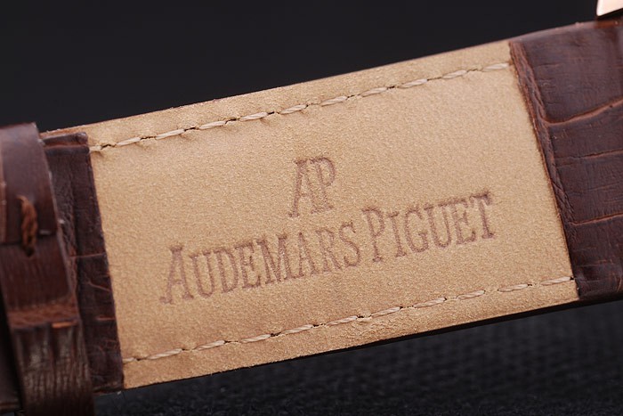 Armband plattierten: Brown Krokolederarmband mit Wärme geprägt Audemars Piguet Name und das logo und ein Audemars Piguet eingeschrieben 18k Rose vergoldet Flip-Chart Haken clasp