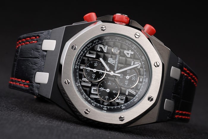 Armband ionenplattiert: Hitze Audemars Piguet schwarzem Krokolederarmband mit Doppel roten Nähten und Audemars Piguet geprägt graviert ionenplattiert Einfalt-clasp