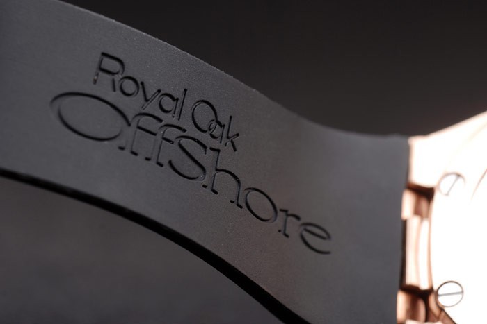 Armband: Audemars Piguet Royal Oak Offshore schwarzen Kautschukarmband mit eingeprägtem Audemars Piguet Rose- graviert Gold klappbare in clasp