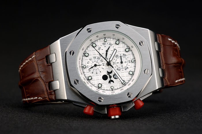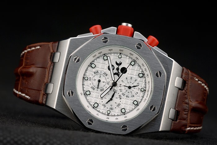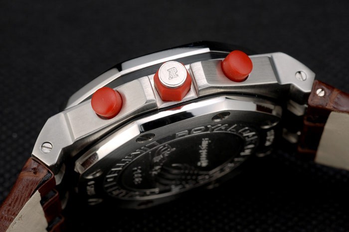Krone: Edelstahl Audemars Piguet logo roten Emaille hexagonal Krone mit zwei kleinen roten Emaille Druckknopf Kronen auf beiden Seiten des it
