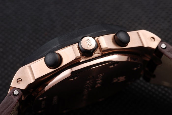 Armband: Hitze Audemars Piguet dunkelbraun Krokolederband mit Doppel-weißen Nähten geprägt und Audemars Piguet graviert Rosen vergoldet klappbare in clasp