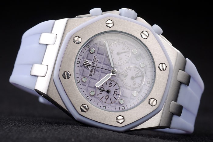 Armband: Audemars Piguet Royal Oak Offshore geprägt lila Gummiband mit Audemars Piguet poliertem Edelstahl Einfalt-graviert clasp