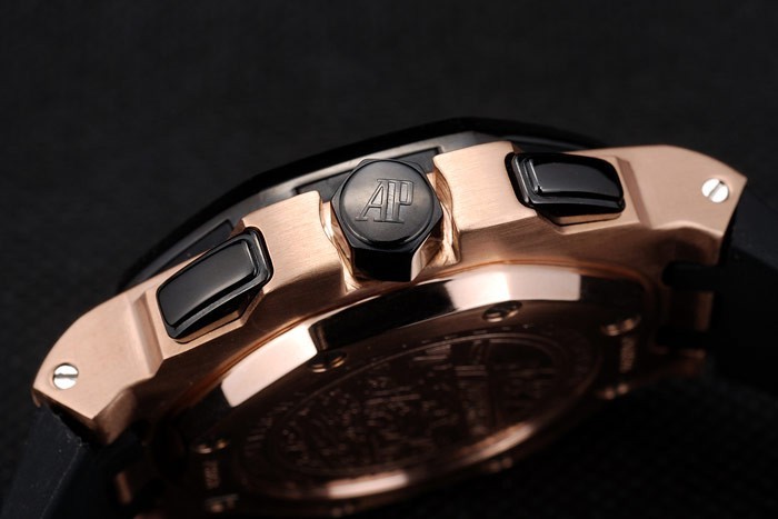 Armband plattiert: Schwarzes Kautschukband mit Hitze geprägt Audemars Piguet Royal Oak Offshore Stempel und ein Audemars Piguet eingeschrieben ionenplattiert Haken-Schnalle clasp