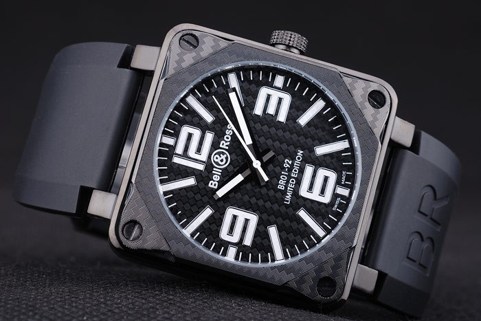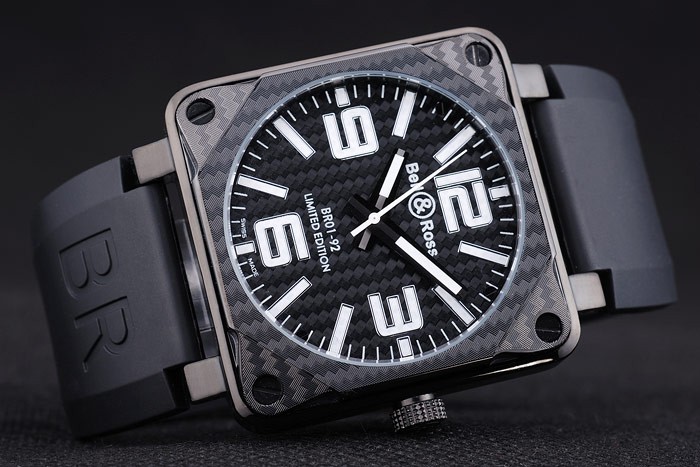Armband: Bell & Ross-Logo und den Produktcode mit Ionen- schwarzen Kautschukarmband geprägt vernickelt Haken-Schnalle clasp