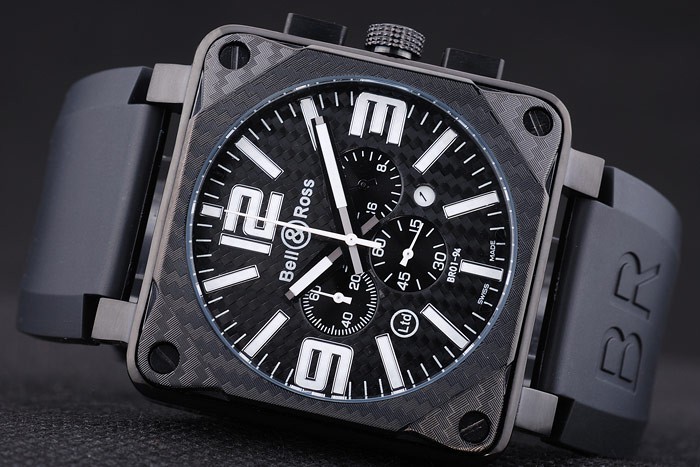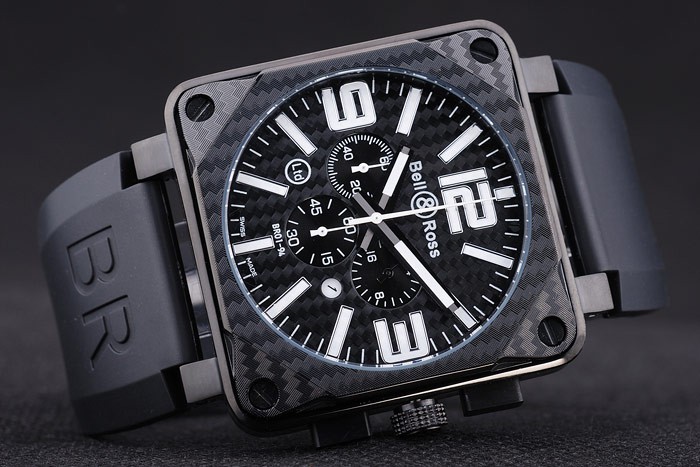 Armband: Hitze geprägt Bell & Ross-Logo und Produktcode schwarzen Kautschukarmband mit Ionen -plated Haken-Schnalle clasp