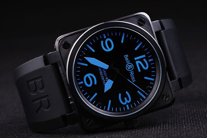 Armband: Schwarzes Kautschukband mit Wärme geprägtes Logo, Modellnummer und Produkt Code und BR graviert ionenplattiert Haken-Schließe
