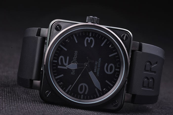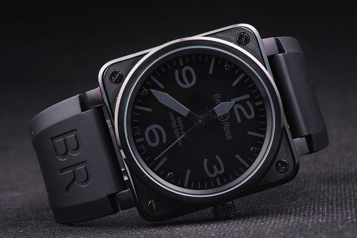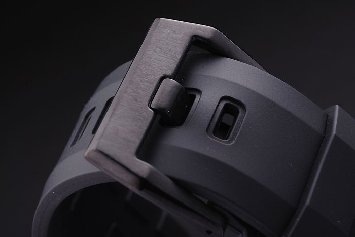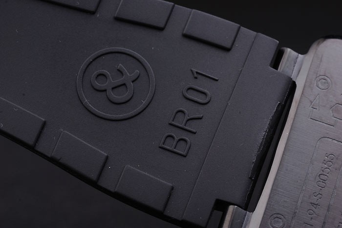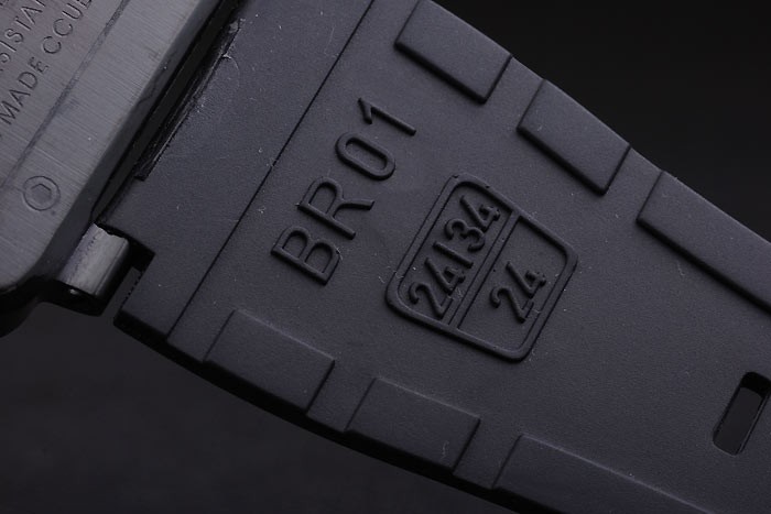 Armband: Schwarzes Kautschukband mit Wärme geprägtes Logo, Modellnummer und Produkt Code und BR graviert ionenplattiert Haken-Schließe