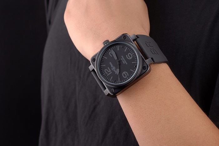 Zurück: Edelstahl ionenplattiert Rückseite mit Bell & Ross inscriptions