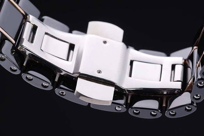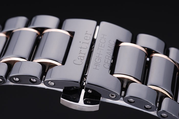 Armband: Schwarze Keramik und Rose-Gold-Gliederarmband mit Cartier High-Tech Keramik eingraviert versteckte Push-Release clasp
