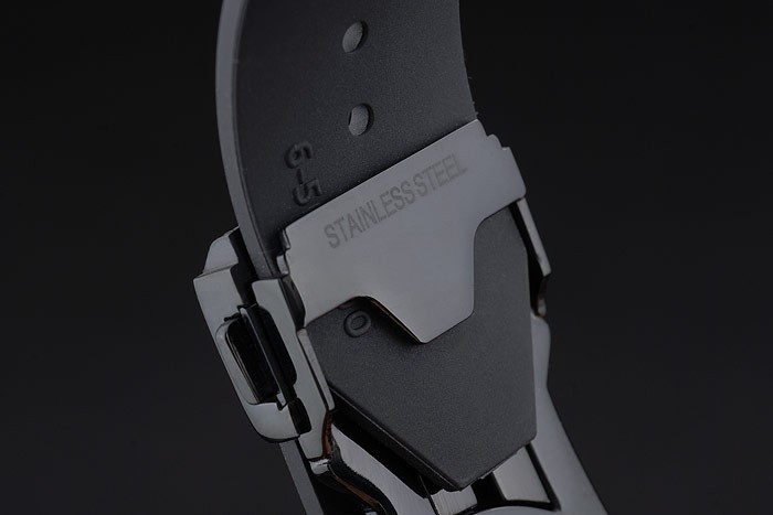 Armband: Hublot Geneve Wärme gerippten schwarzen Kautschukarmband mit Hublot Geneve gravierten ionenplattiert Push-Release Haken clasp
