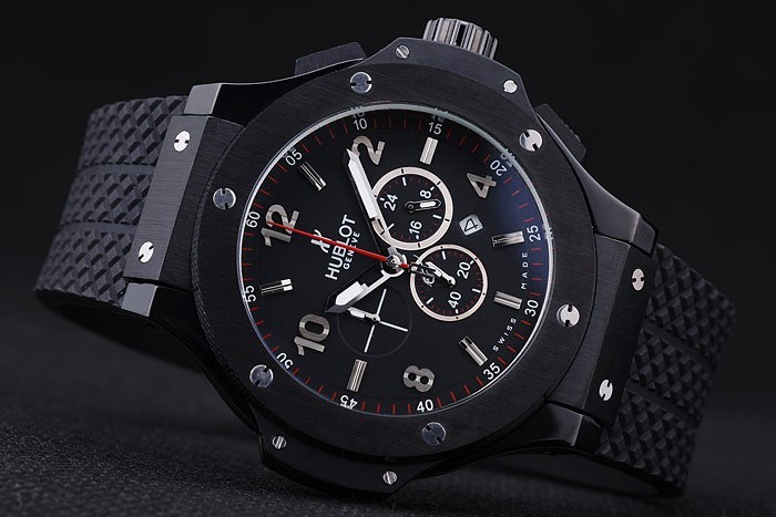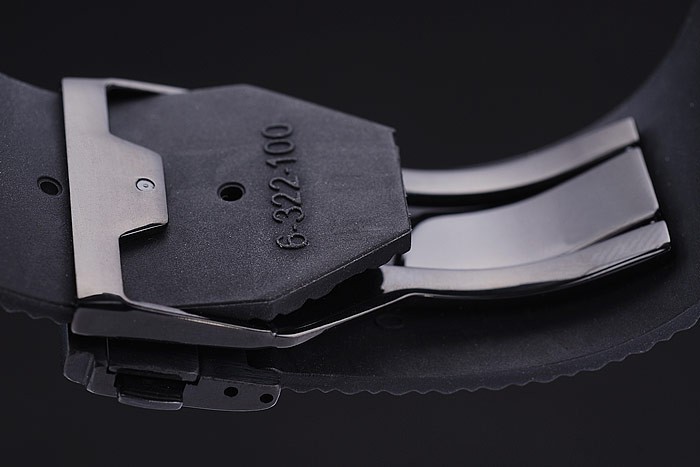 Fall: Strukturiertes schwarzes Gummiband mit ionenplattiert Druckknopfhakenverschluss und Hublot engravings