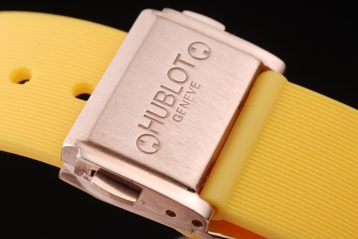 Armband plattiert: Strukturierter gelbe Gummiband mit Rosen Gold Druckknopfhakenverschluss und Hublot engravings