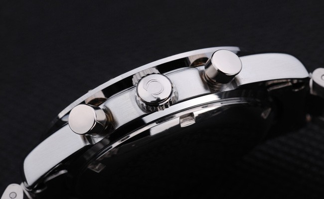 Rückseite: Edelstahl-Steckgehäuseboden mit Omega Inschriften