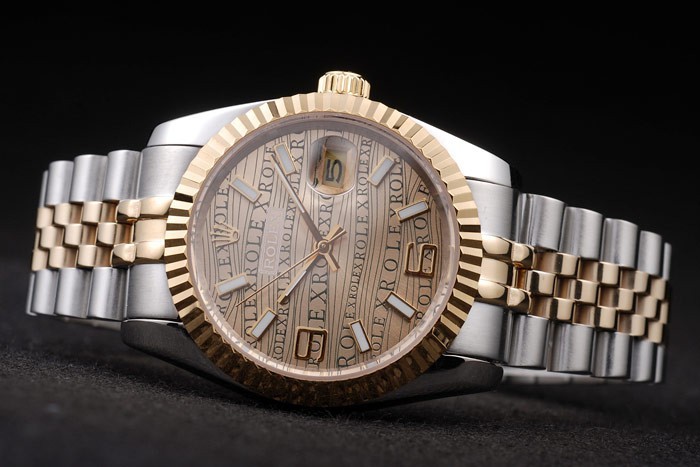 Armband: Zwei getönten Armband Link in gebürstetem Edelstahl und 18 Karat Gelbgold überzogenem Stahl mit Rolex graviert versteckte Spange Anzeigen der Rolex logo