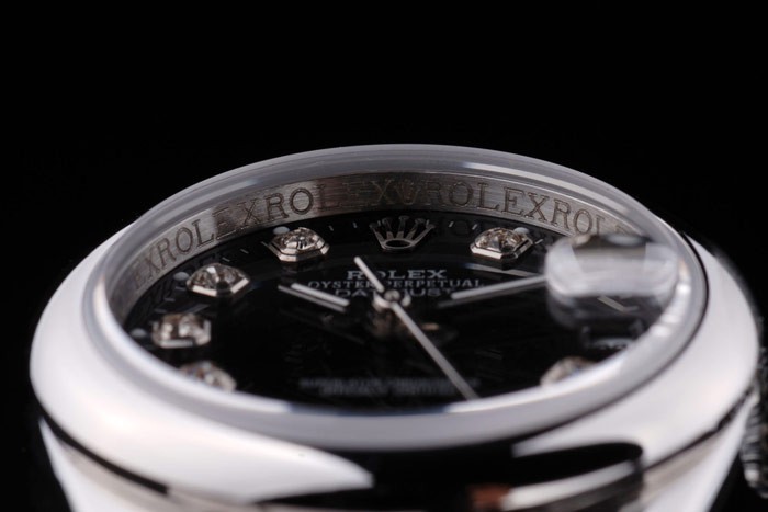 Rückseite: Edelstahl Push-Gehäuseboden mit grünen Rolex-Logo stamp