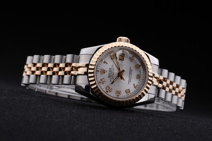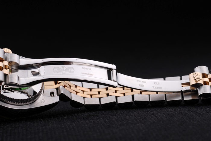 Armband: Zwei getönten triple Gliederarmband aus poliertem Edelstahl und 18 Karat Gelbgold beschichteten Stahl mit Rolex Gravur versteckt Schließe die Rolex logo
