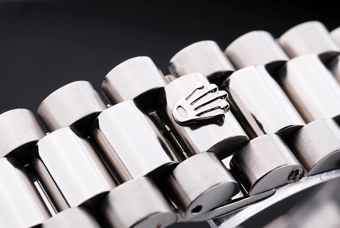 Armband: geschliffener und polierter Edelstahl Armband mit Rolex Gravur versteckte Spange die Rolex logo