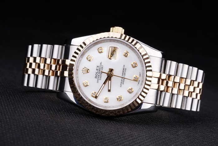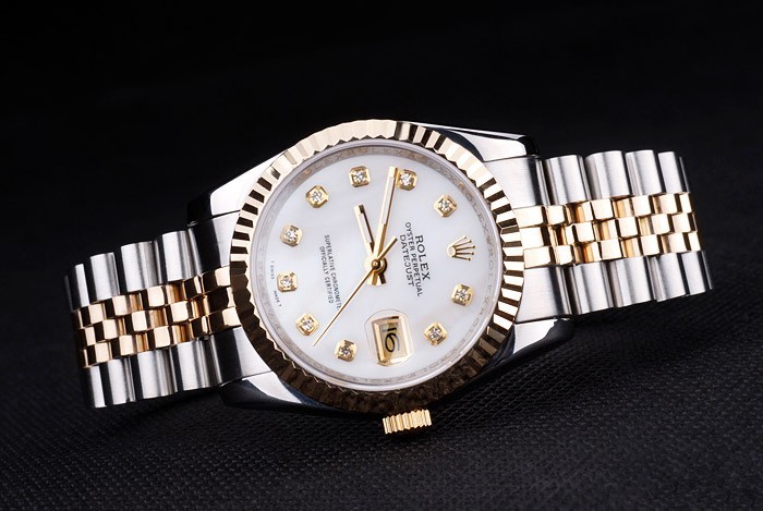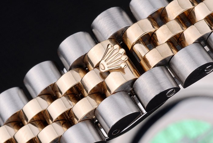 Armband: Zwei getönten Gliederarmband aus gebürstetem Edelstahl und 18 Karat Gelbgold überzogenem Stahl mit Rolex Gravur versteckte Spange Anzeigen der Rolex logo
