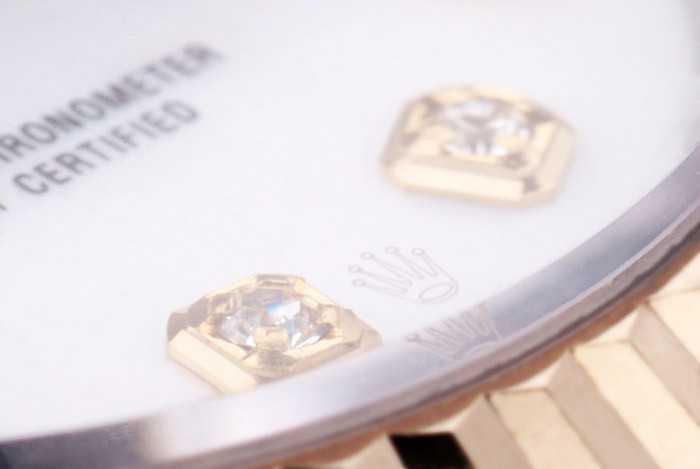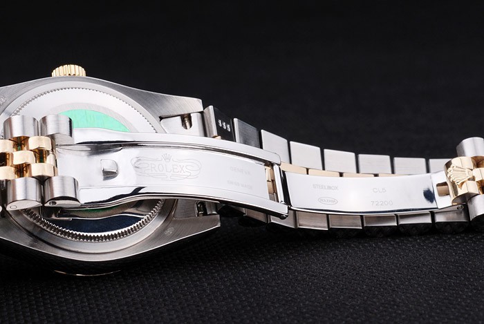 Rückseite: Edelstahl Push-Gehäuseboden mit grünen Rolex-Logo stamp