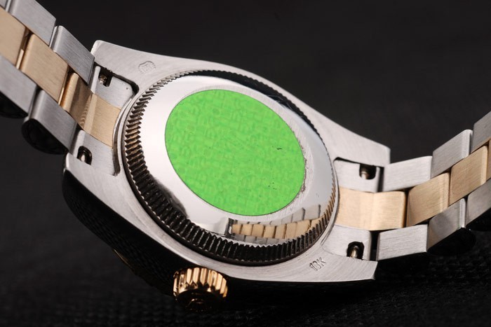 1Back Bewegung: Push-in Edelstahl zurück mit grünen Rolex Aufkleber und markings