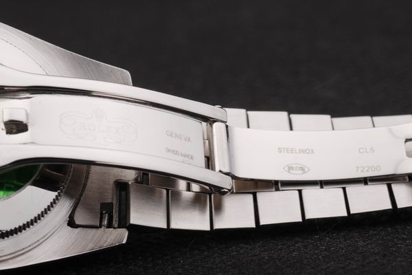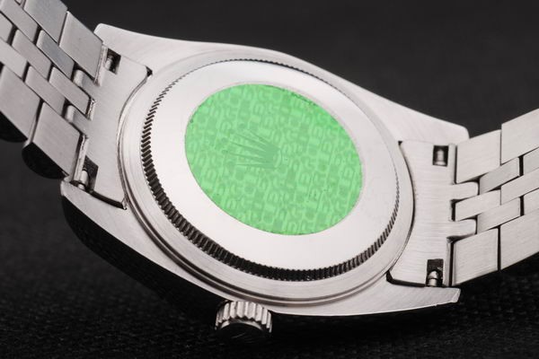 Back: Push-in Edelstahl zurück mit grünen Rolex Aufkleber und markings