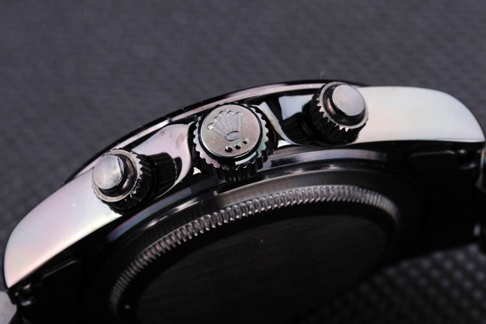 Armband: Schwarz Edelstahl-Gliederarmband mit Rolex Gravur Faltschließe Anzeige Rolex logo