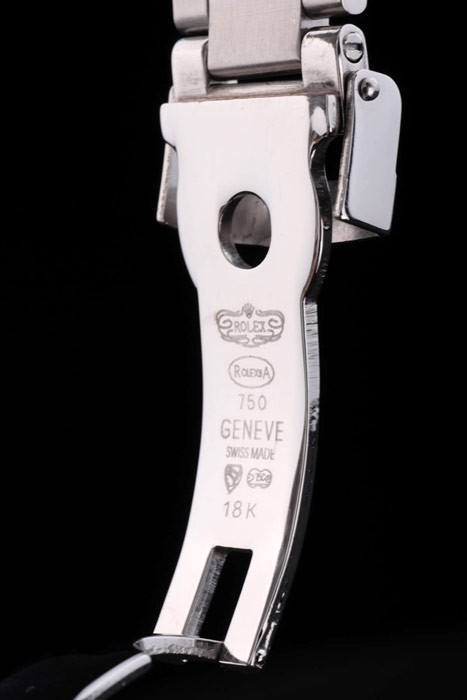 Armband: geschliffener und polierter Edelstahl-Gliederarmband mit Rolex Gravur Faltschließe die Rolex logo