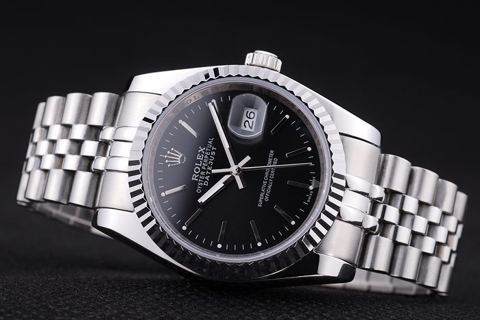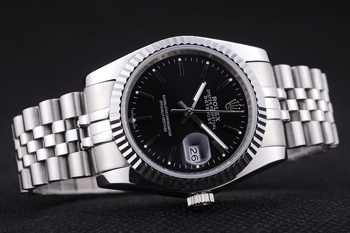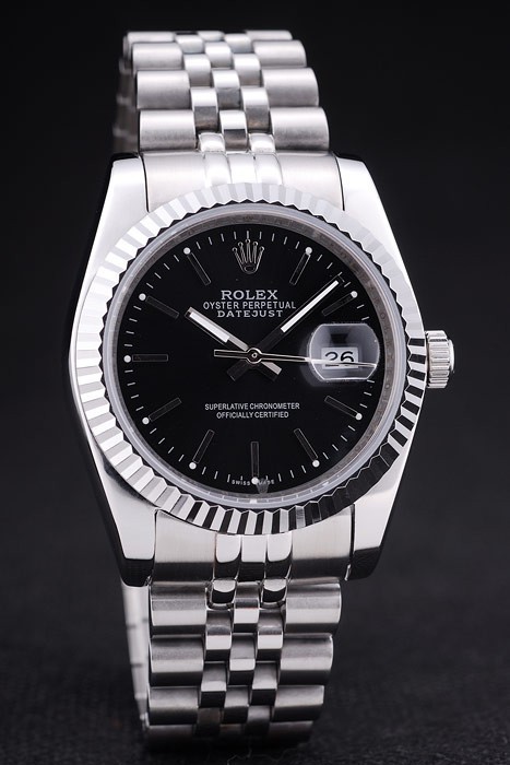 Armband: geschliffener und polierter Edelstahl-Gliederarmband mit Rolex-Logo versteckt clasp
