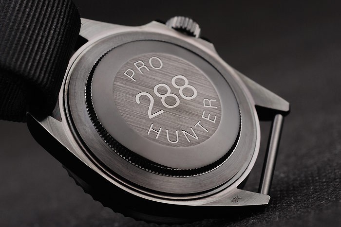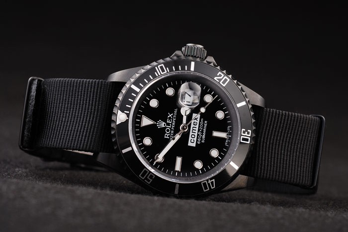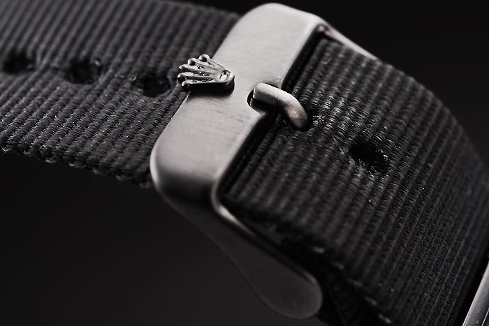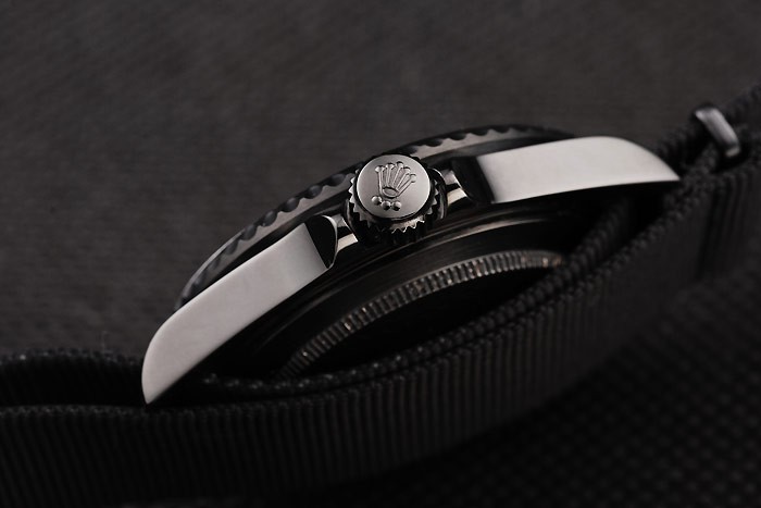 Armband: Schwarz Gewebeband mit Rolex-Logo geschnitzt ionenplattiert Haken Schließe
