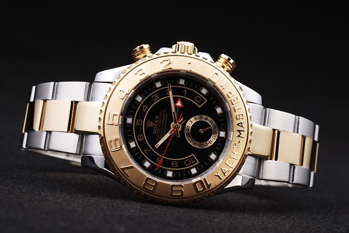 Lünette: überzogenes Rose Gold Lünette unidirektionale cutwork mit 1 bis 10 Markierungen und Yacht Master Gravur auf einem blauen Lack background